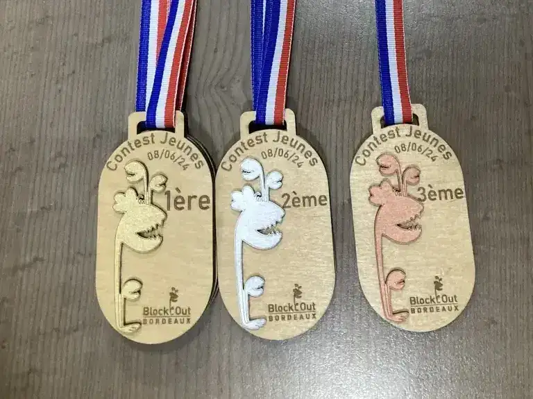 Contactez l'Atelier de Flo Ram pour vous démarquer avec un trophée personnalisé et pourquoi pas de belles médailles gravées au nom des vainqueurs pour ajouter un souvenir unique à un moment unique (personnalisation sur place possible, tarifs à voir en fonction de la distance).